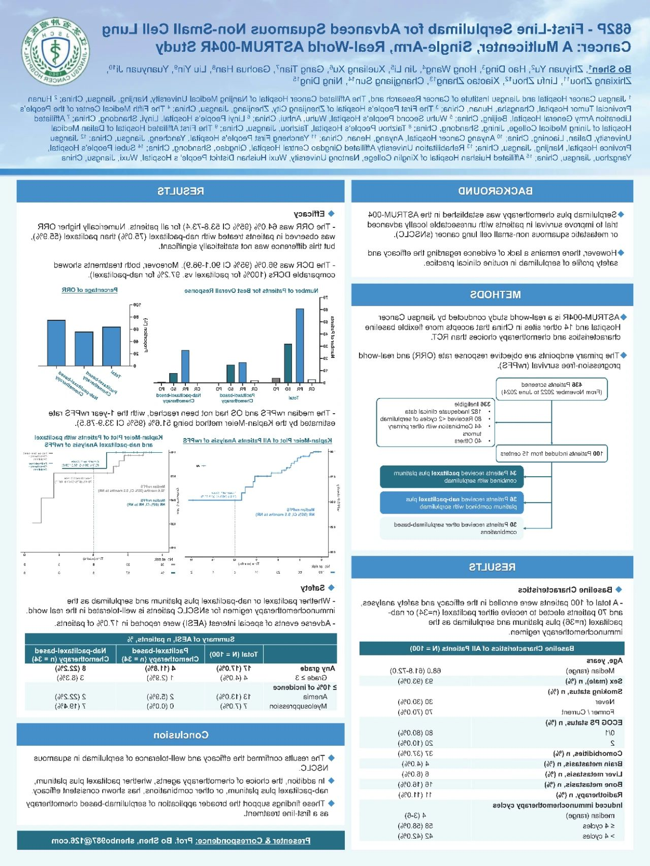 ASTRUM-004R is a real-world study conducted by Jiangsu Cancer Hospital and 13 other sites in China. Unlike the strict eligibility criteria of the ASTRUM-004 trial, this study accepts more flexible baseline characteristics and chemotherapy choices. The primary endpoints are objective response rate (ORR) and real-world progression-free survival (rwPFS).