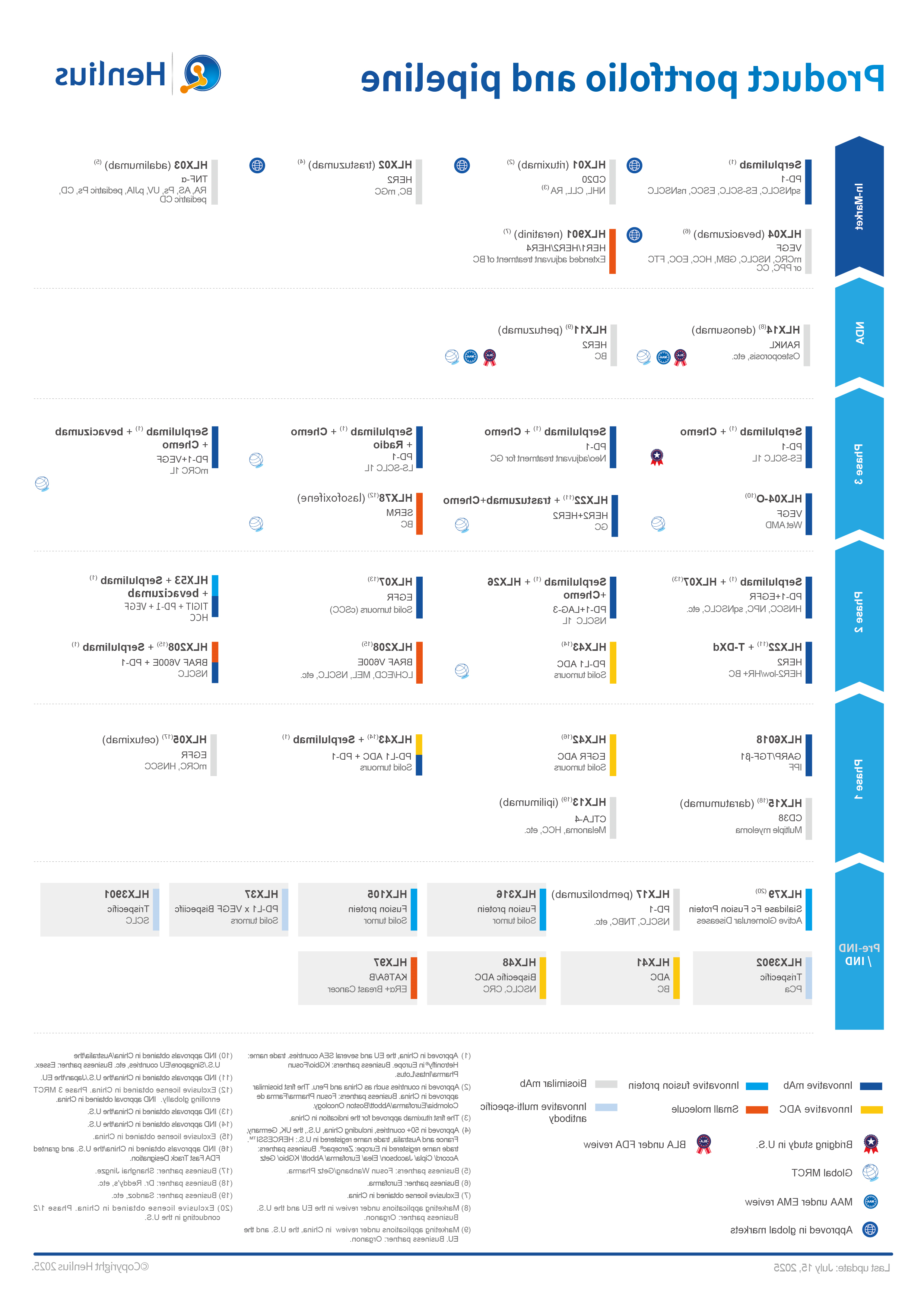 At present, Henlius has 6 products launched in China, 4 approved for marketing in overseas markets, and 5 marketing applications under review in China, the U.S. and the EU, respectively. Meanwhile, Henlius has conducted over 30 clinical studies for 19 products globally. HANLIKANG (rituximab injection), the first product of Henlius, has been approved by the National Medical Products Administration (NMPA) as China's first biosimilar. The second product HANQUYOU (trastuzumab, trade name: HERCESSI™ in the U.S., Zercepac® in Europe) is a Chinese mAb biosimilar approved in the U.S. the EU and China, bringing more treatment options to patients with HER2 positive breast and gastric cancer worldwide. The company’s first self-developed innovative monoclonal antibody HANSIZHUANG (serplulimab, trade name: Hetronifly® in the EU) is the world’s first anti-PD-1 mAb for the first-line treatment of SCLC.